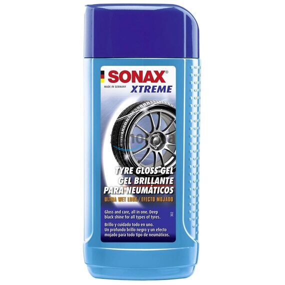 Гель для ухода и чернения резины SONAX Xtreme Reifen GlanzGel (Tyre Gloss Gel) 235100 250 мл придает всем типам шин превосходный блестящий черный мокрый вид, а также мощный водо-грязе отталкивающий эффект который держится несколько недель. Инновационная формула геля заботится и одновременно защищает резину от растрескивания и выцветания. Гуль для ухода за шинами может использоваться для консервации покрышек в межсезонье.