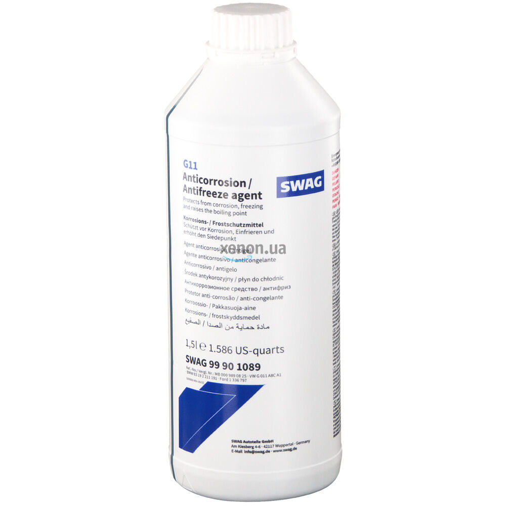 Синий концентрат премиального антифриза SWAG G11 99901089 объемом 1,5 литра. В двигателях внутреннего сгорания значительная часть энергии, получаемой при сгорании топлива, преобразуется в теплоту. Чтобы предотвратить перегрев двигателя и последующий выход его механических компонентов из строя, система охлаждения двигателя должна эффективно рассеивать теплоту в окружающую среду. Часть теплоты, отводимой системой охлаждения, в случае необходимости используется для нагрева воздуха в салоне автомобиля.
