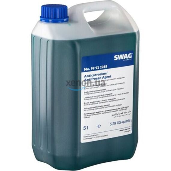 Синий концентрат премиального антифриза SWAG G11 99922268 объемом 5 литра. В двигателях внутреннего сгорания значительная часть энергии, получаемой при сгорании топлива, преобразуется в теплоту. Чтобы предотвратить перегрев двигателя и последующий выход его механических компонентов из строя, система охлаждения двигателя должна эффективно рассеивать теплоту в окружающую среду. Часть теплоты, отводимой системой охлаждения, в случае необходимости используется для нагрева воздуха в салоне автомобиля.