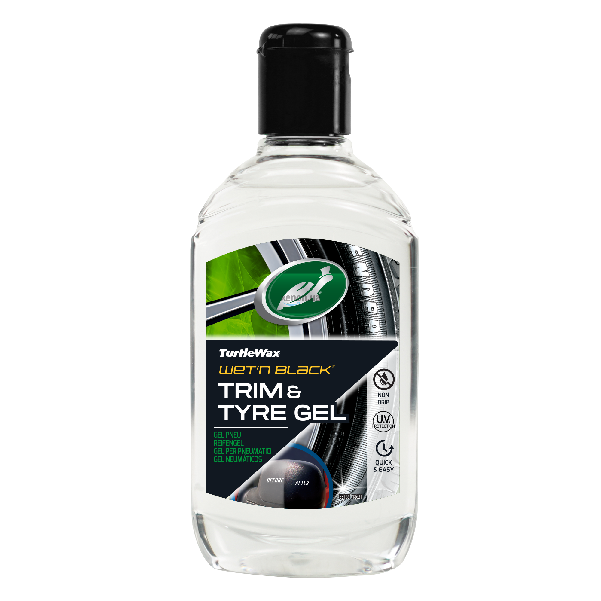 Гель для шин Turtle Wax Trim & Tyre Gel 300 мл. Гель для шин, позволяющий быстро и надолго начернить шины, а также защитить поверхность покрышек от трещин, утери цвета, выгорания на солнце.