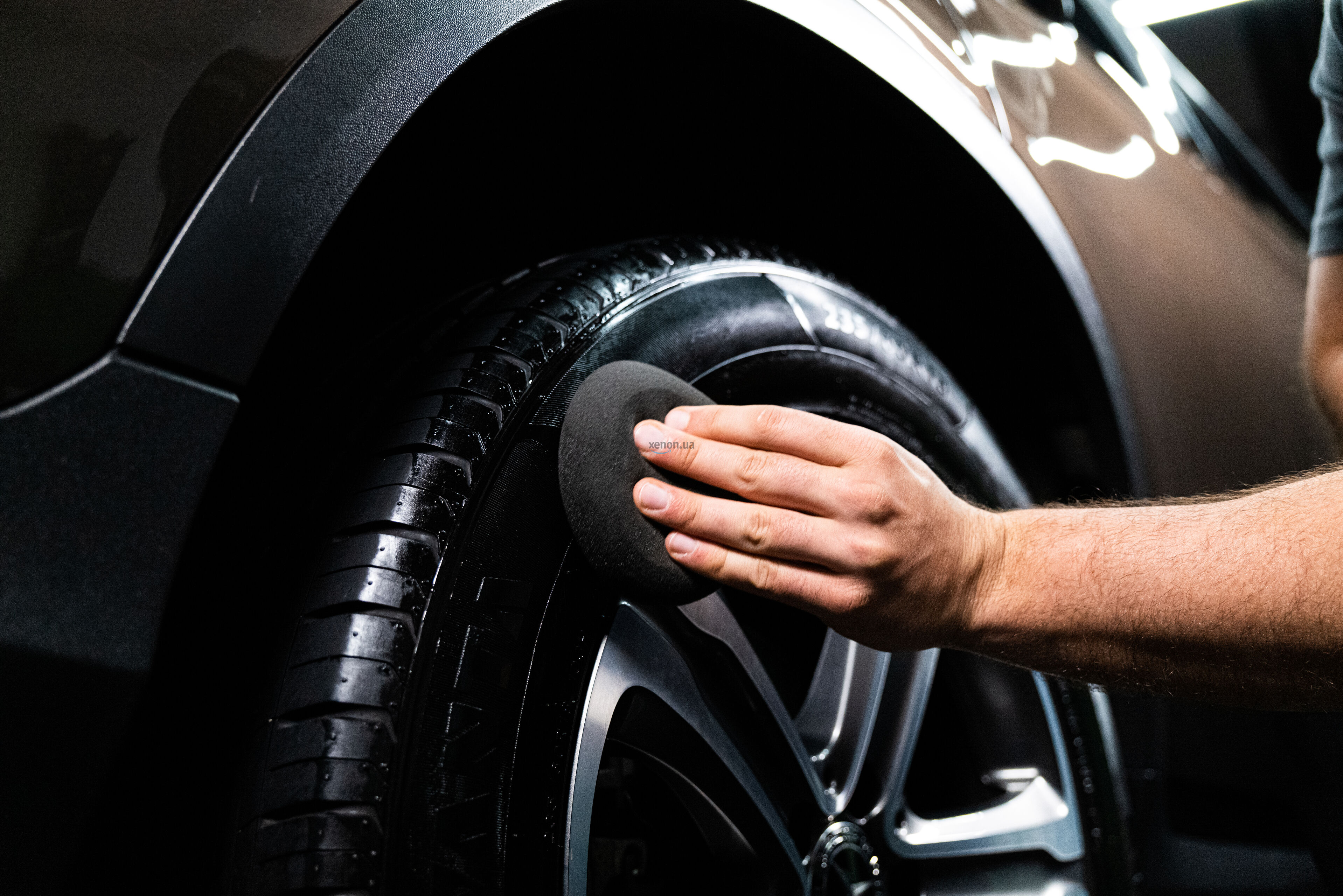 3. Мягкими круговыми движениями втирайте гель ровным слоем на всю боковину шины;