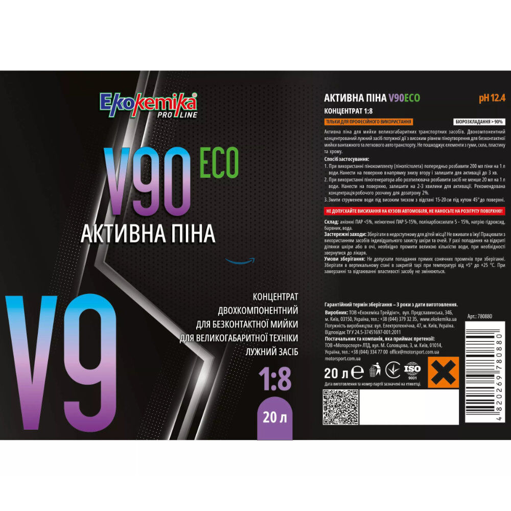 Активна двокомпонентна піна для великогабаритної техніки EKOKEMIKA PRO-LINE V90 ECO (20 л, 1:8)
