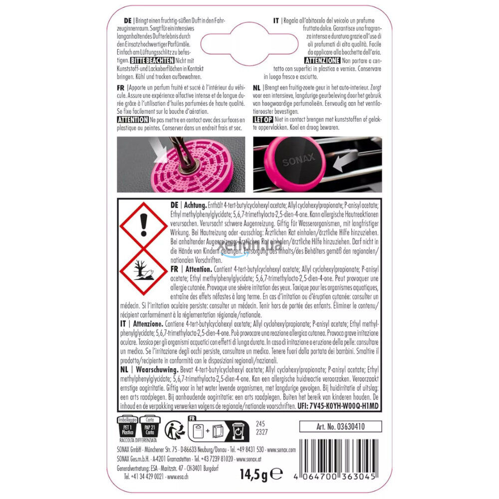 Насолоджуйтесь солодкою свіжістю з ароматизатором Sonax Sweet Flamingo! У цьому відео ми покажемо, як цей ароматизатор створює легку та приємну атмосферу в салоні вашого автомобіля, наповнюючи його солодкими та фруктовими нотами.