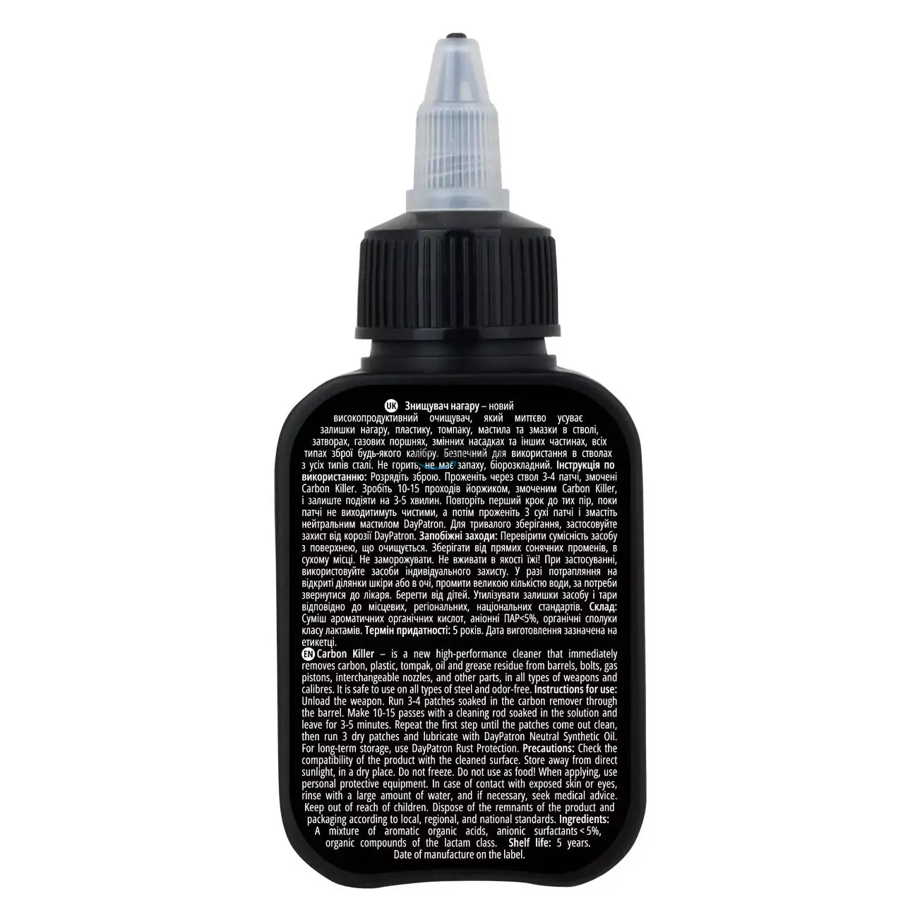 Знищувач нагара DAY PATRON Carbon Killer - це новий стандарт високопродуктивних очищувачів, які миттєво усувають залишки карбонових відкладень, пластику та томпаку, мастила та змазки в стволі, затворах, газових поршнях, змінних насадках і т.д., у всіх видах нарізної та гладкоствольної зброї малого та великого калібру. Безпечний для використання в стволах з нержавіючої сталі та інших типів.