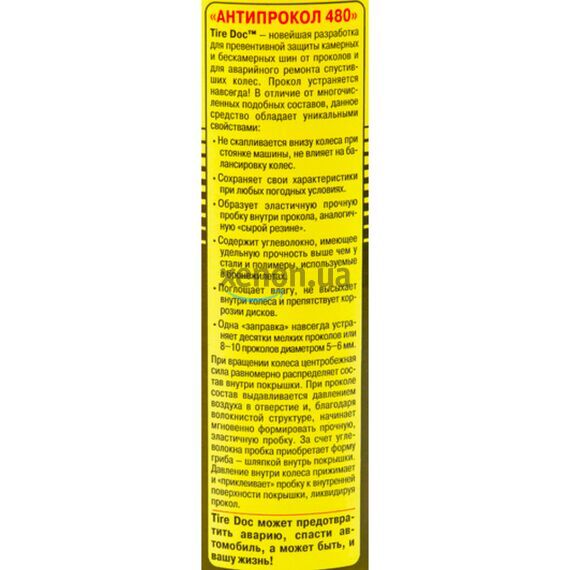 Hi-Gear Tire Doc антипрокол - запобігання та усунення проколів шин 480 мл