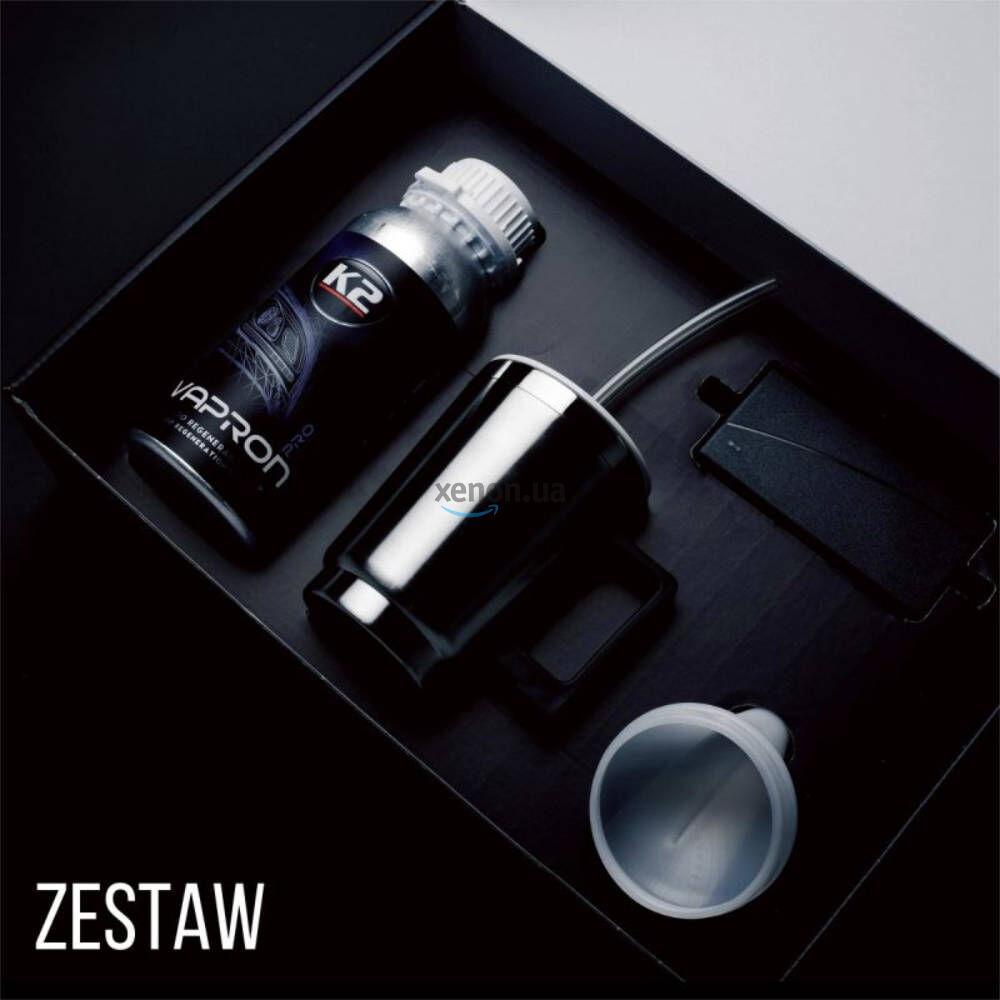 K2 VAPRON Refill Pro — спеціальна рідина, ідеально підходить для професійного набору для відновлення автомобільних фар K2 Vapron. УВАГА! Під час роботи рекомендується надягати захисні рукавички і респіратор. Уникайте контакту рідини з поверхнями. Набір не продуктів для реєстрації школи фара. Інструкція по застосуванню: налити рідину в чашку, що входить в комплект (до половини). Завершіть нанесення D7900 K2 Vapron Kit і вилийте невикористану рідину в алюмінієву пляшку. Щільно закрийте пляшку.