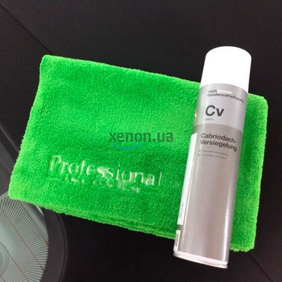 Спеціальний склад Koch Chemie Cv Cabriodach-Versiegelung для автомашин з матер'яним відкидним верхом. На основі високоякісних органічних фторових смол. Склад розроблений для сильного захисту текстилю та шкіри проти вогкості та бруду. При нанесенні складу поверхня зберігає первісний доглянутий вигляд, з глибоким та вираженим кольором. В ході застосування, поверхня набуває гідрофобних властивостей і дає тривалий захист тканини, а також шкіри від вологи, пилу та бруду. У зимовий період можна обробляти підлогове покриття автомобіля, для перешкоди проникнення води і бруду вглиб. Так само можна застосовувати для садових меблів, взуття, тентів човнів, на тканинних навісах, наметах.