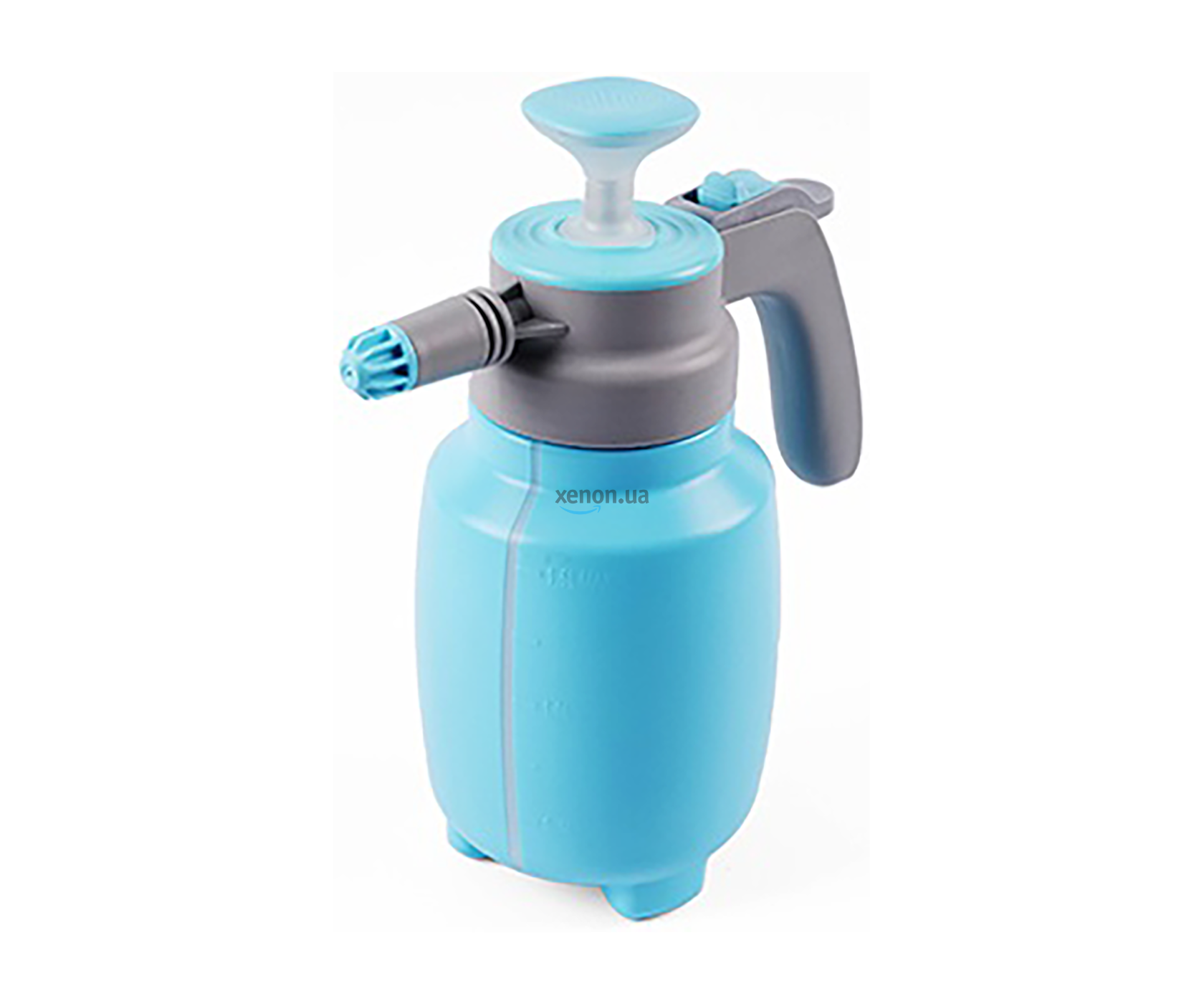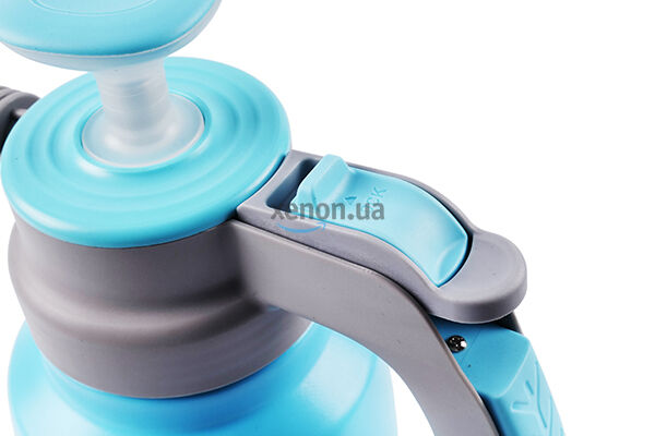 Калібрувальна шкала допоможе візуально контролювати рівень рідини в резервуарі об'ємом 1,5 л. Кнопка-фіксатор горловини запобігає ненавмисному розливу. Широка рукоятка насоса забезпечить легке нагнітання повітря для створення робочого тиску. Форсунка сопла допоможе змінити кут розпилення. В комплекті — піноутворююча насадка.