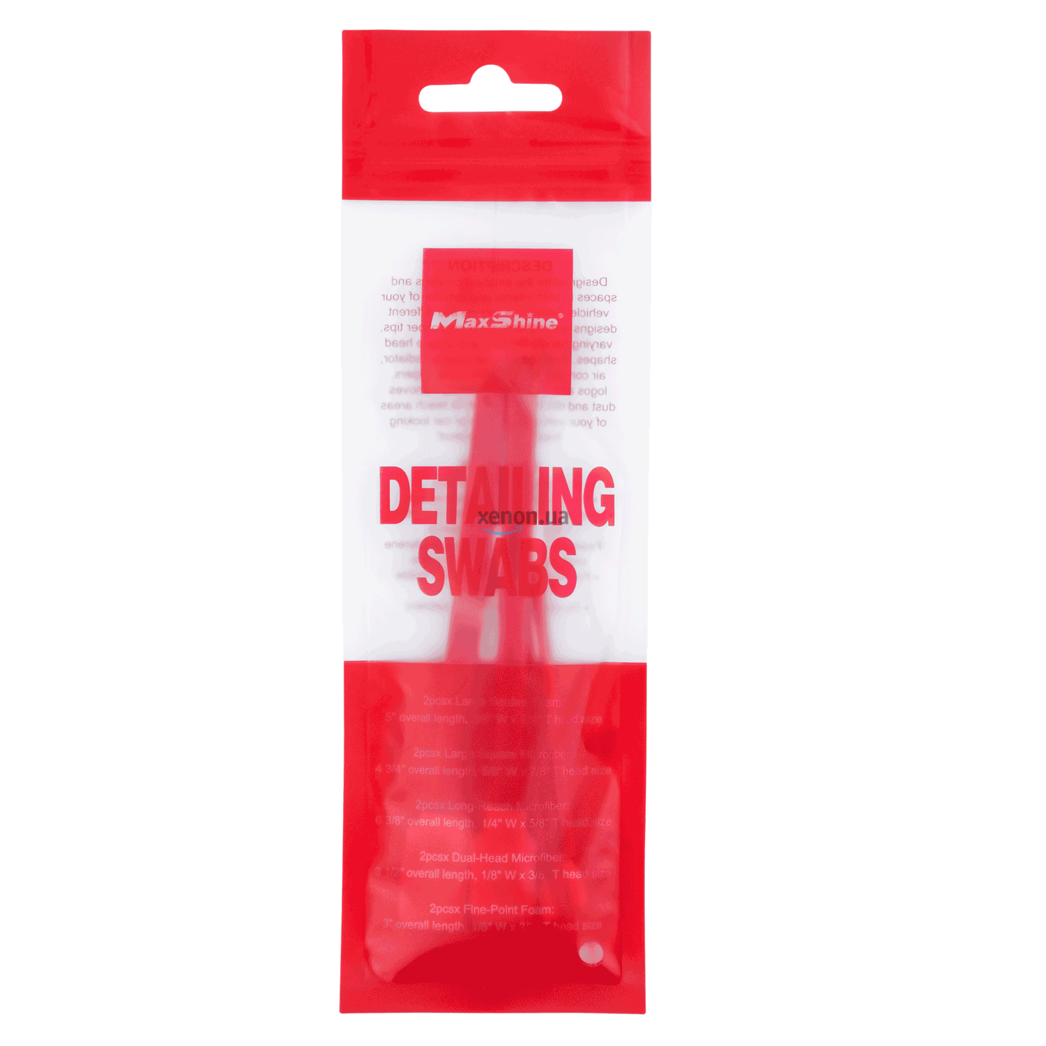 MaxShine Detailing Swabs – це набір з десяти полістирольних тампонів, призначених для очищення отворів, дефлекторів та інших важкодоступних місць. Виготовлені з м'яких неабразивних матеріалів. Легко миються і підходять для багаторазового використання.
