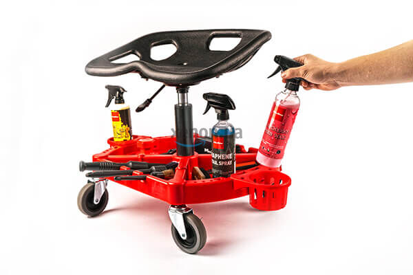 Комфортна поза майстра під час робочого процесу безпосередньо впливає на результат. Цим фактом керувалися експерти Maxshine, розробляючи спеціальні меблі для автомайстерень та студій дітейлінгу. Car Detailing Rolling Stool – табурет з газліфтом, поворотним на 360° сидінням та чотирма прогумованими посиленими колесами.