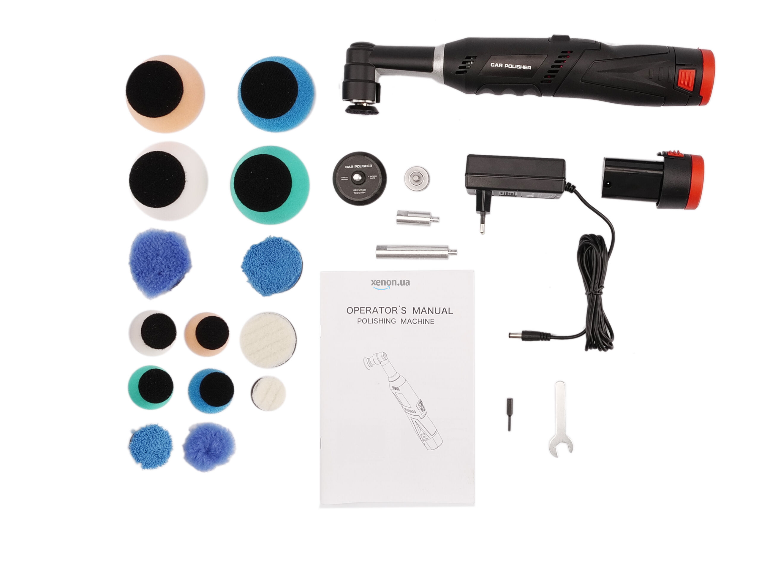 MaxShine Mini Cordless Polisher - акумуляторна полірувальна машина подвійної дії зі змінними насадками для зміни типу обертання. Застосовується для полірування важкодоступних місць кузова, як стійки, отвори, ребра, а також елементів салону.