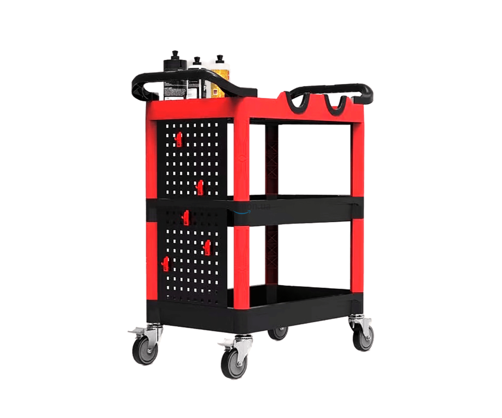 MaxShine Premium Heavy Duty Detailing Cart – міцний пластиковий візок з перфорованими стальними панелями, призначена для зручного зберігання та транспортування інструментів та автохімії. Його полиці дозволяють розмістити всі речі так, як це необхідно майстру під час роботи.