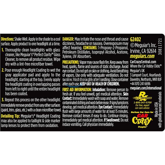 Спосіб застосування: Для досягнення найкращого результату склад слід наносити на чисту прохолодну поверхню. Перед початком роботи видаліть з фар пил та бруд за допомогою очищувача для скла та рушника. Захистіть краї фар стрічкою, що маскує. Не допускайте потрапляння засобу на фарбовану поверхню.