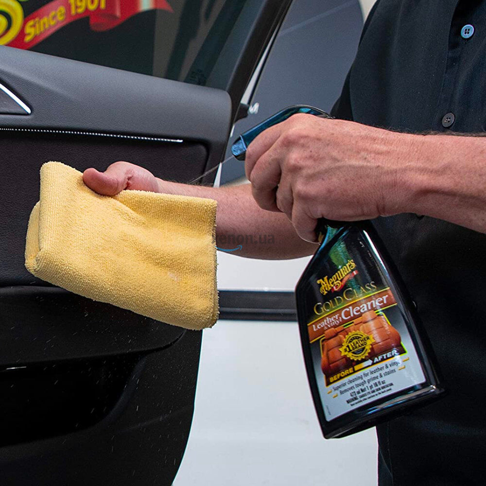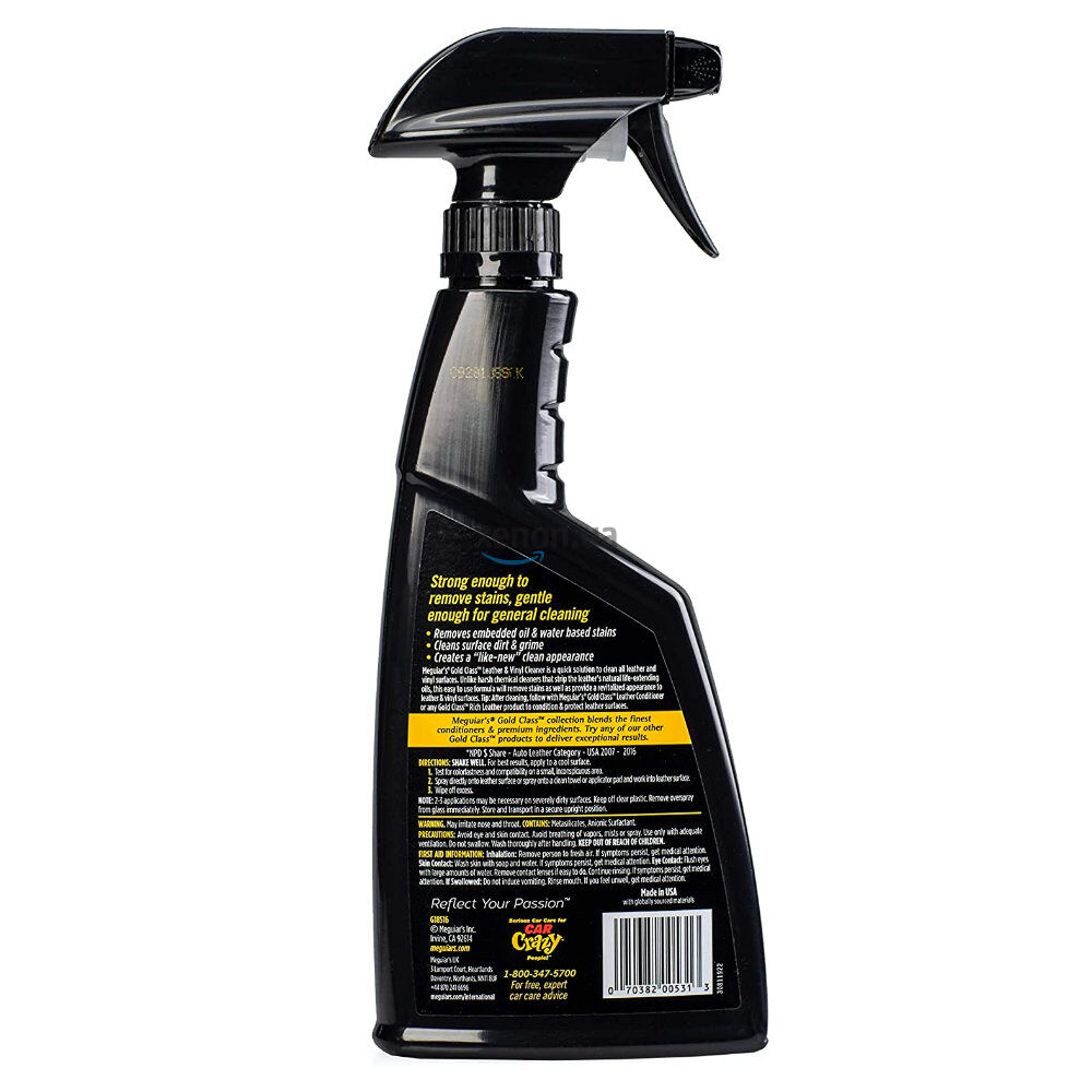 Meguiars Leather & Vinyl Cleaner G18516 - ідеальне рішення для очищення всіх шкіряних і вінілових деталей. Засіб делікатно видалить плями та покращить зовнішній вигляд шкіри та вінілу. Після очищення рекомендується нанести кондиціонер для пом'якшення шкіри.