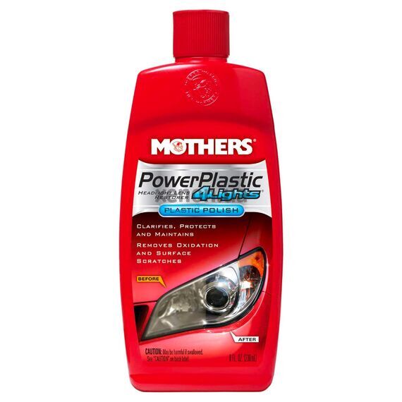 Спеціальна формула MOTHERS PowerPlastic 4Lights дозволяє використовувати поліроль з полірувальною машинкою, так і для ручної обробки деталей. Здатна в один крок обробити (і захистити) як твердий та жорсткий, так і м'який та гнучкий пластик фари. Також підходить для прозорого пластику, наприклад, твердого пластикового прозорого скла.