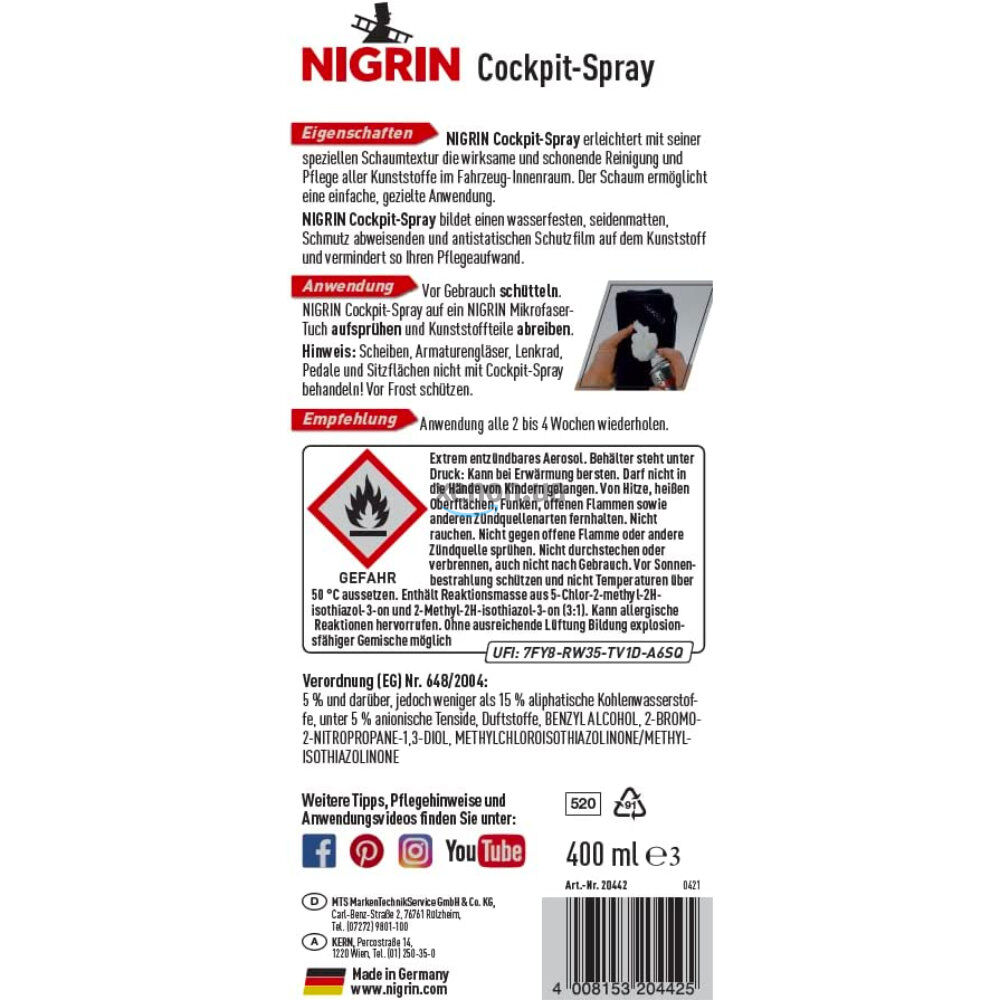 Інструкція: як використовувати очищувач протектант пластику NIGRIN Cockpit-Spray