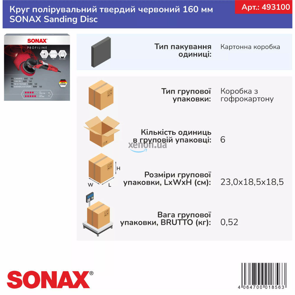 Червоний полірувальний круг SONAX Sanding Disc (493100) з жорсткою дрібнопористою структурою призначений для професійного шліфування та полірування пошкоджених лакофарбових покриттів. Оптимальний для використання з ротаційними (обертовими) полірувальними машинками.