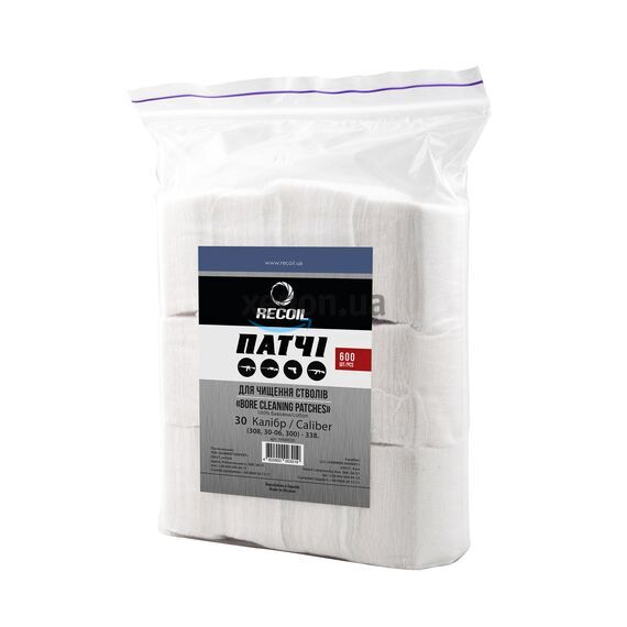 Патч квадратної форми для чищення стволів. Призначений для чищення стволів калібру 30 (308, 30-06, 300...) - 338 600 шт. Патчі від торгової марки Recoil виготовлені в Україні з високоякісної бавовни. Дозволяють швидко і надійно очистити ствол практично будь-якої стрілецької зброї, представленої на ринку.