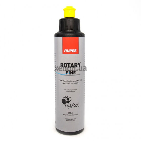 RUPES Rotary Fine — водорозчинна абразивна полірувальна паста, призначена для роботи з роторним інструментом, таким як RUPES BigFoot LH19E. Склад розроблений для ідеальної обробки твердих лаків, нейтралізує дрібні подряпини і відновлює лакофарбове покриття. Надає глянцевий блиск оброблюваній поверхні.