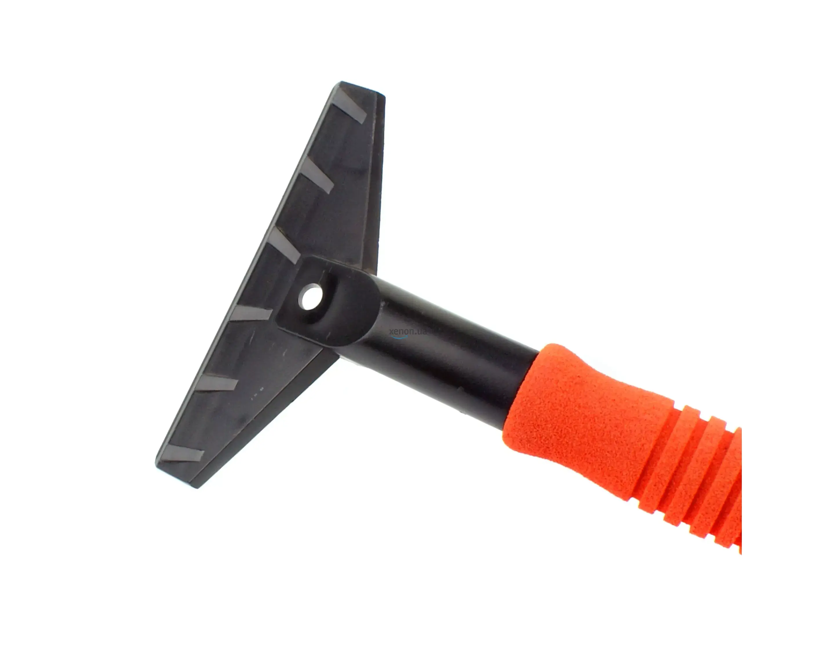 Щітка з водозгоном та скребком на телескопічній алюмінієвій ручці 72-122 см SAPFIRE (777779). Діаметр алюмінієвої трубки 20/22 мм. Ручка-тримач одноколірна, помаранчева, неопренова. Щетина щітки одноколірна, чорна, опушена довжиною 4,5 см, товщина ворсу щітки 20 мм. Довжина ворсової частини щітки – 20 см.