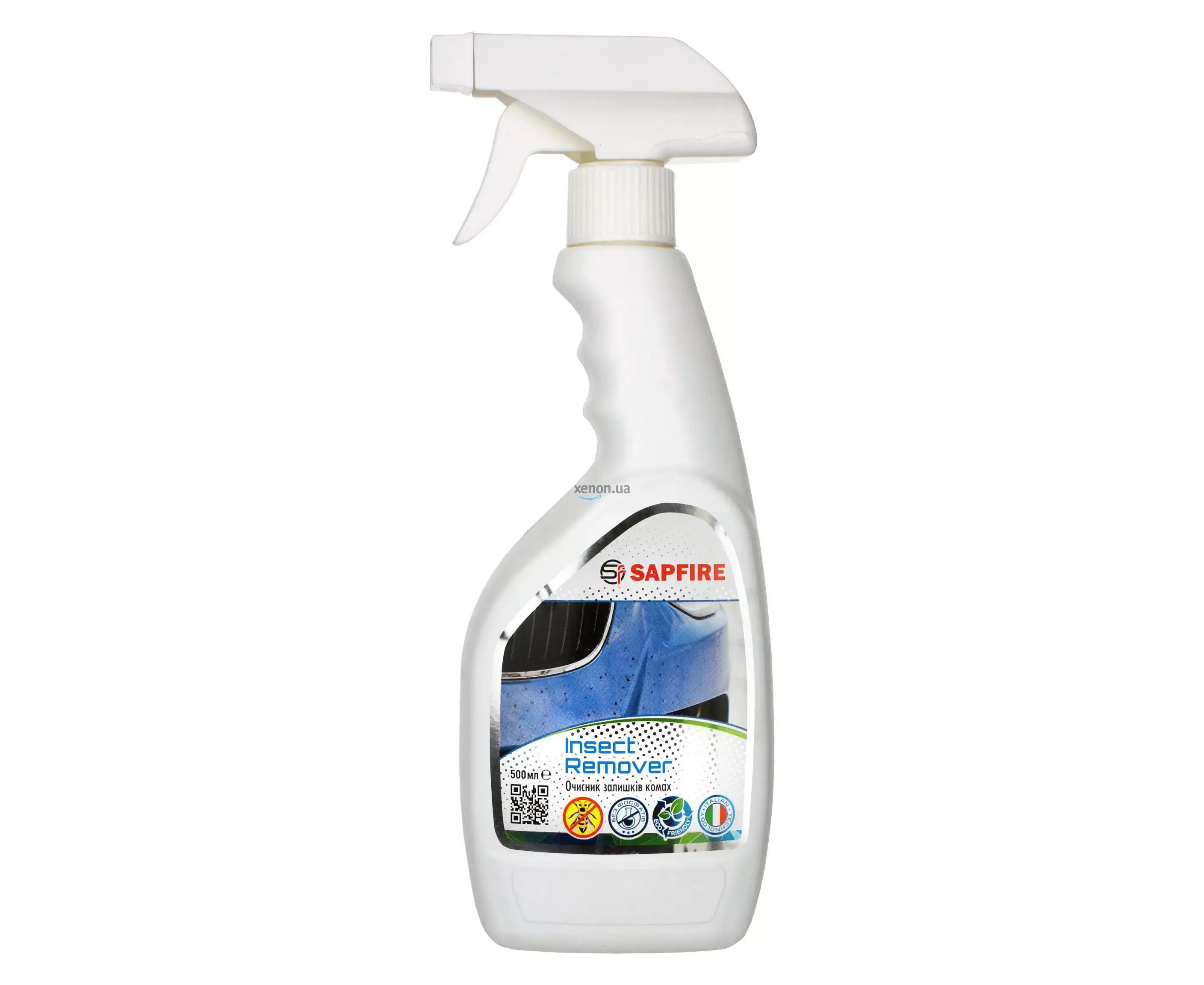 Очищувач залишків комах SAPFIRE Insect Remover 500 мл (750554) — призначений для швидкого та легкого видалення присохлих залишків комах зі скла, лакофарбових, пластикових та хромованих поверхонь, решіток радіатора. Має високі очищаючі властивості. Не залишає після себе слідів та райдужних розводів. Не ушкоджує лакофарбове покриття автомобіля, захищає його деталі і щітки склоочисника. Не містить фосфатів. Біологічно розкладається.