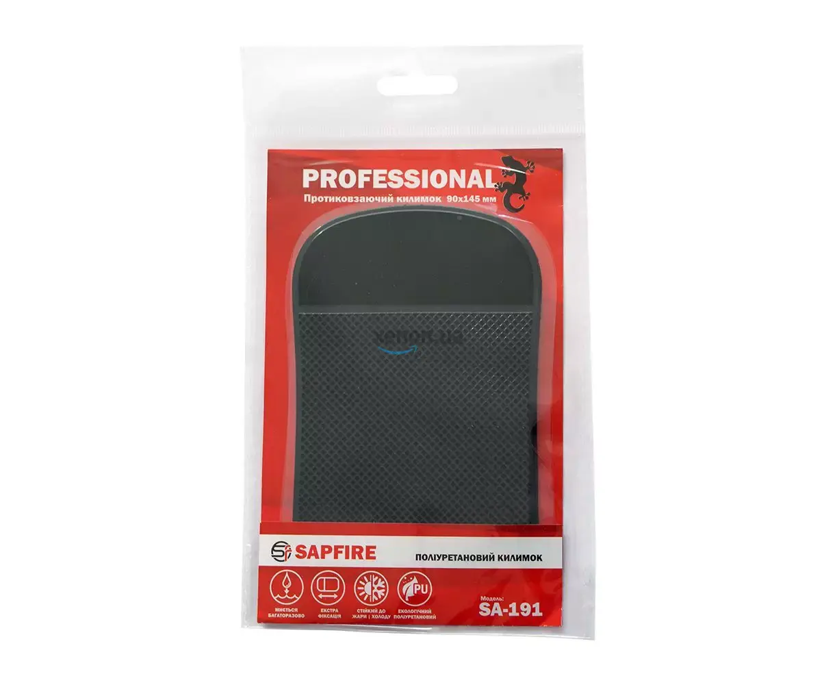 Протиковзаючий килимок SA-191 PROFESSIONAL від ТМ SAPFIRE використовується для закріплення або утримання телефону, смартфону, навігатора, окулярів і всякої дріб'язку на панелі приладів Вашого автомобіля, лодки тощо.
