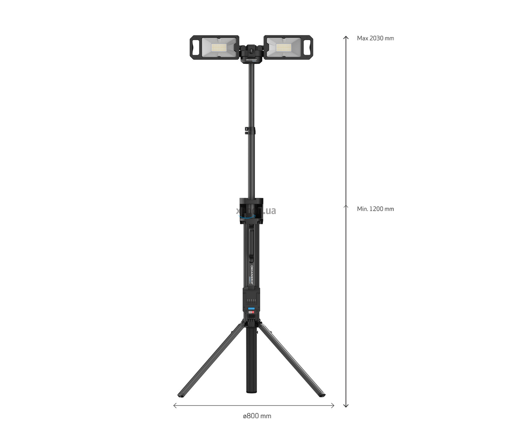 Tower 5 Connect – прожектор із 2 поворотними на 360° головками, що забезпечують рівномірний світловий потік до 5000 люмен та з міцним, легким штативом.Джерело світла – 2 прожекторні LED-головки.