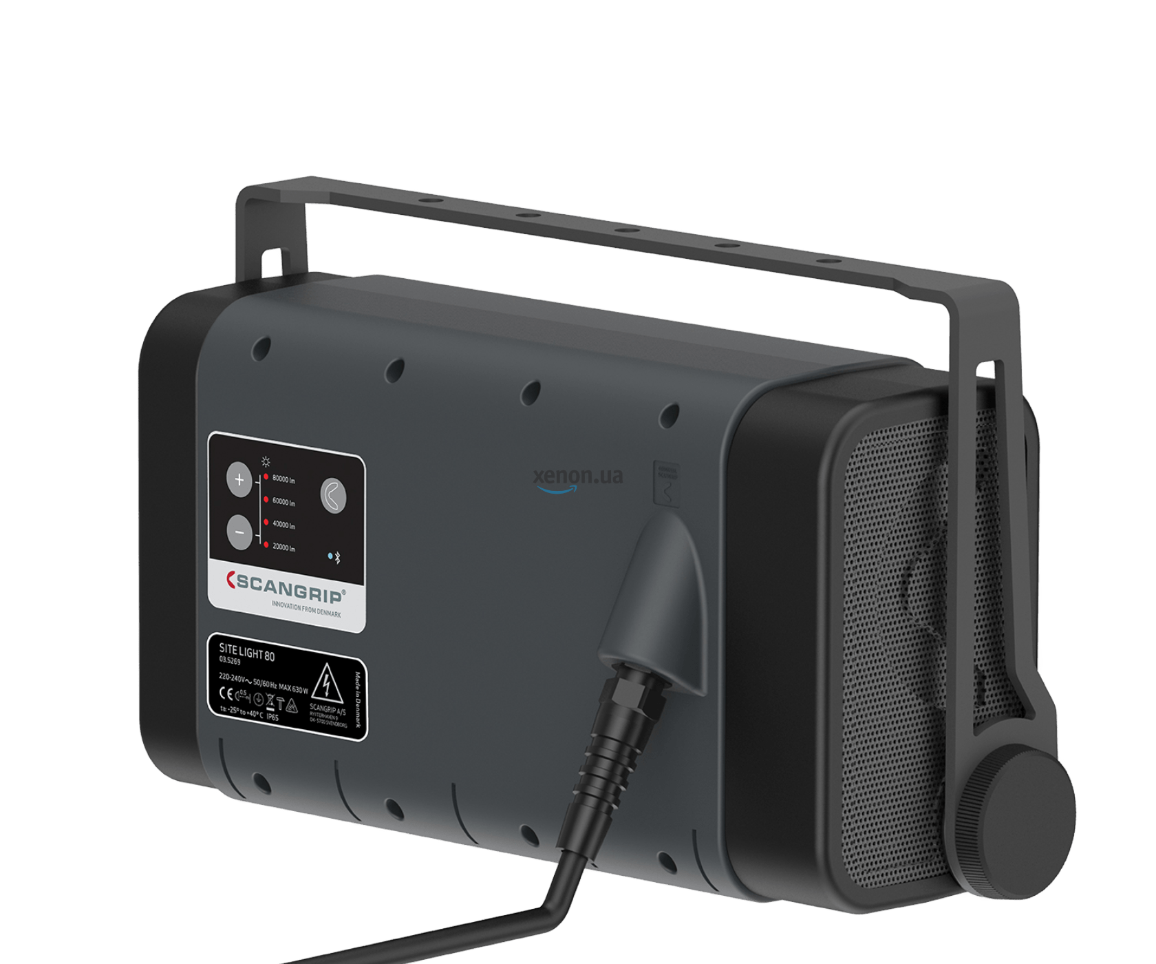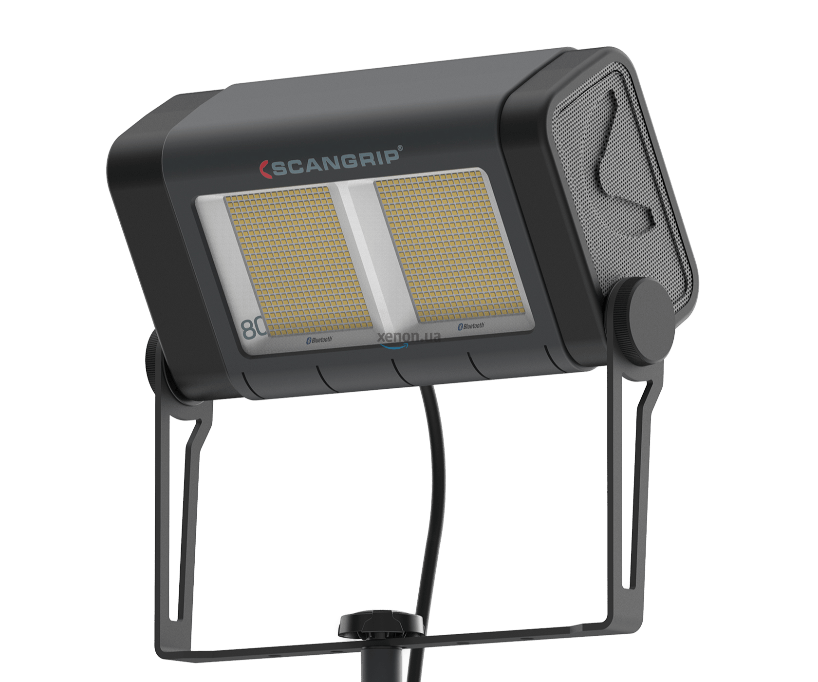 Прожектор Scangrip Site Light 80 має винятковий світловий потік у 80 000 люмен, а також широкий кут променю в 120°, що забезпечує надяскраве освітлення великих площ і робочих зон, що робить його придатним для використання на будівельних майданчиках, складах і виробничих об'єктах.