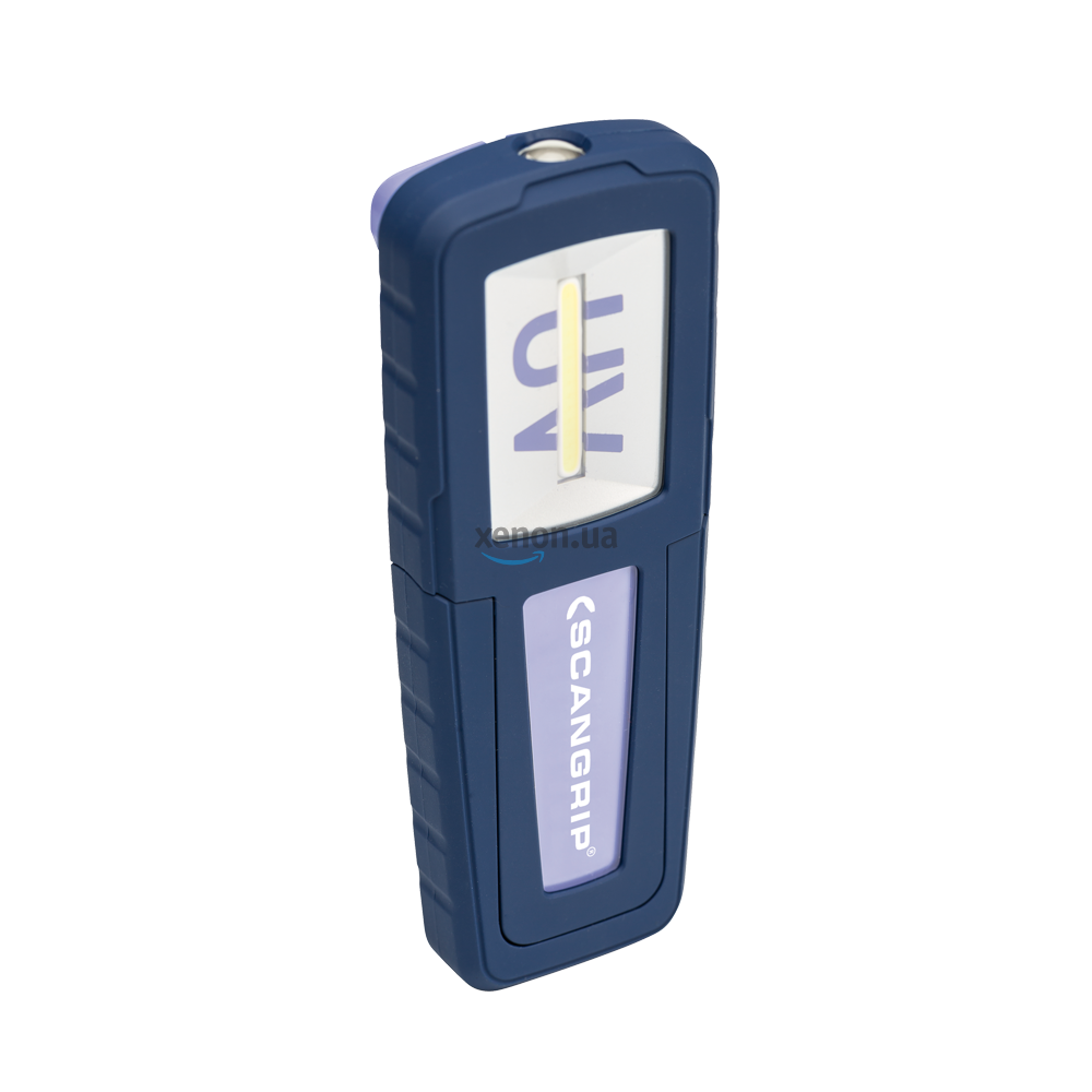 Ручний світильник Scangrip UV-Form оснащений потужним ультрафіолетовим ліхтариком на торці і світлодіодним прожектором на лицьовому боці. По суті, ви отримуєте два пристрої в одному: інспекційний прожектор зі світлодіодною технологією COB і ультрафіолетовий ліхтарик для виявлення витоків у спеціалізованому обладнанні та автомобілях.