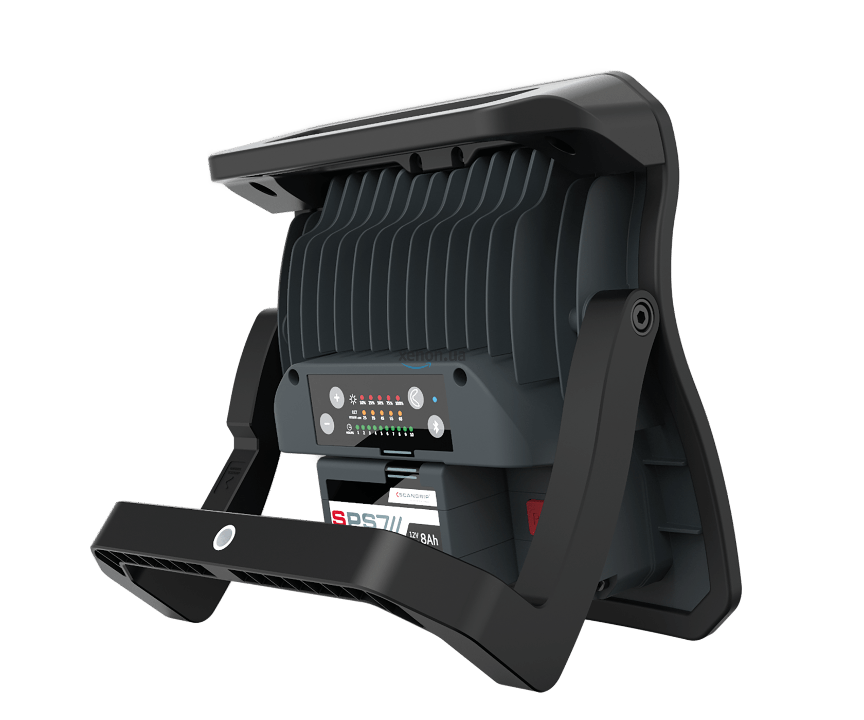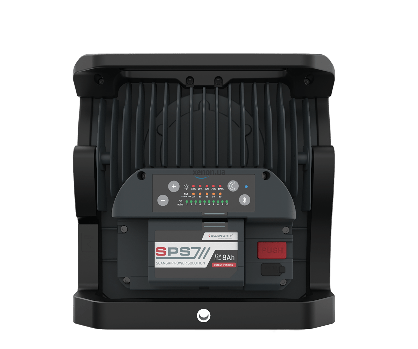 Функція Scangrip Power Solution (SPS) забезпечує безперервне освітлення. Замість розрядженої батареї встановлюється повністю заряджена і робота триває. Або ж, замість батареї приєднується зарядний пристрій, щоб отримати живлення від розетки. Крім цього, в прожектор інтегрований резервний акумулятор, який не дасть змоги залишитися взагалі без світла. За допомогою функції Bluetooth можливо змінювати світловіддачу і колірну температуру;