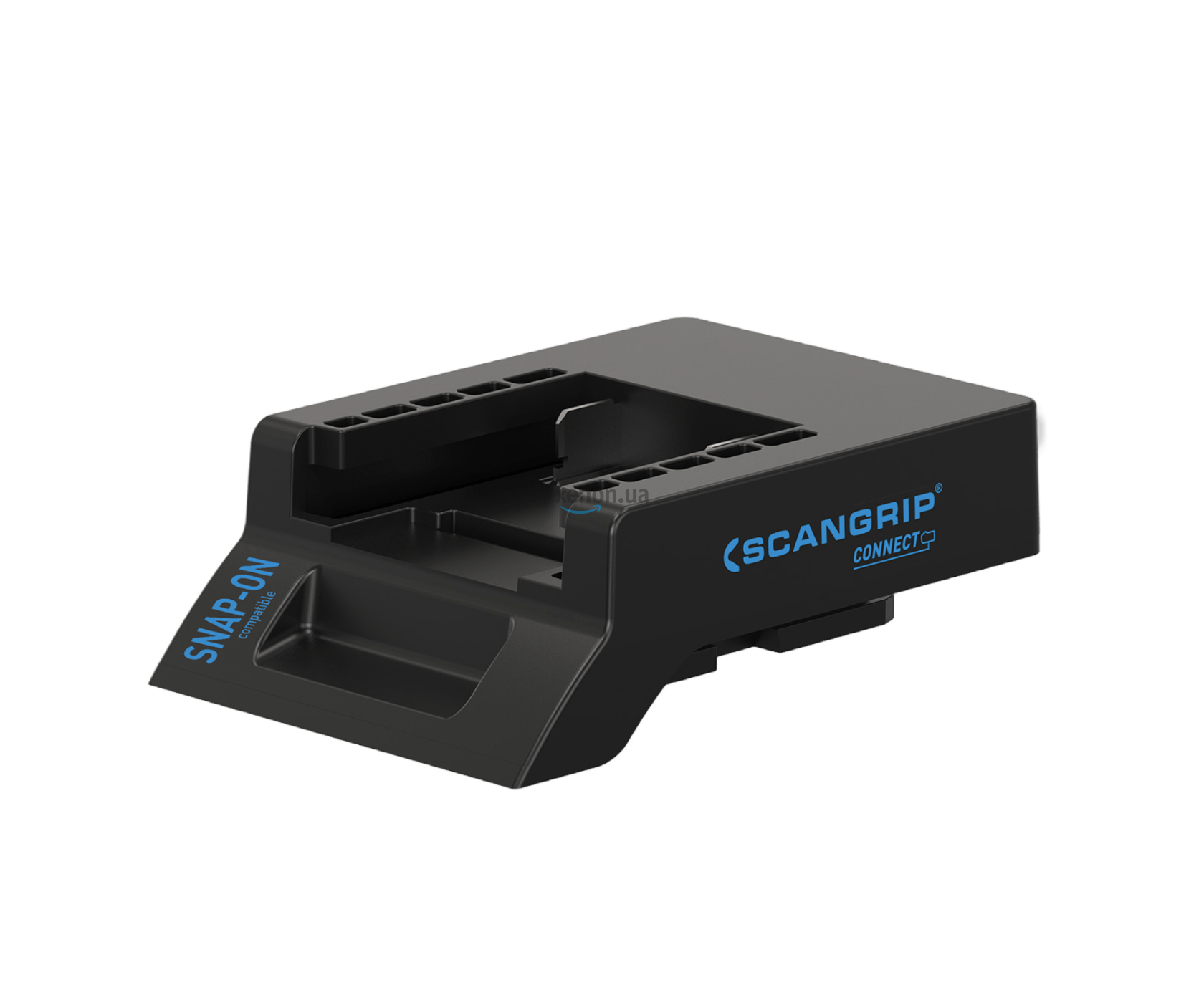 Smart Connector – перехідник, що забезпечує сумісність акумуляторних батарей бренду Snap-On із освітлювальними приладами Scangrip Connect. Вбудована система безпеки потурбується про автоматичний захист від розряджання та перевантаження і вестиме моніторинг температури акумулятора. Для початку роботи просто підключіть перехідник до освітлювального приладу, вставте акумулятор та увімкніть світло.