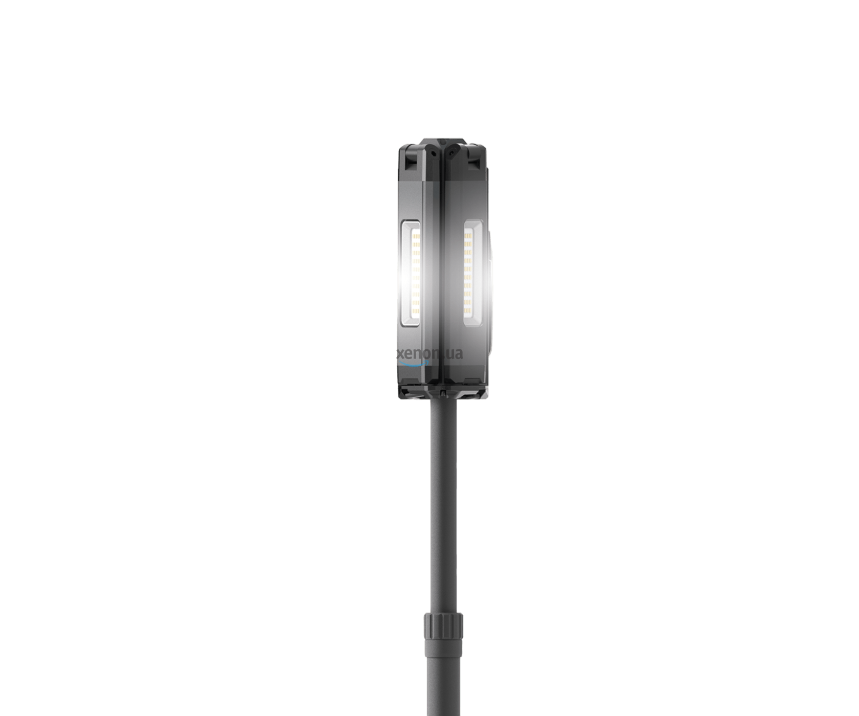Джерело світла – 2 прожекторні LED-головки. При необхідності вони знімаються з штатива та розташовуються на будь-якій горизонтальній поверхні, або ж підвішуються. Для цього передбачений вбудований металічний гачок. Кожна головка обертається незалежно одна від одної у двох осях. Це дозволяє створити ідеальні умови освітлення, виходячи з поточних потреб. Завдяки двокроковому регулюванню світлового потоку можна встановити також яскравість.