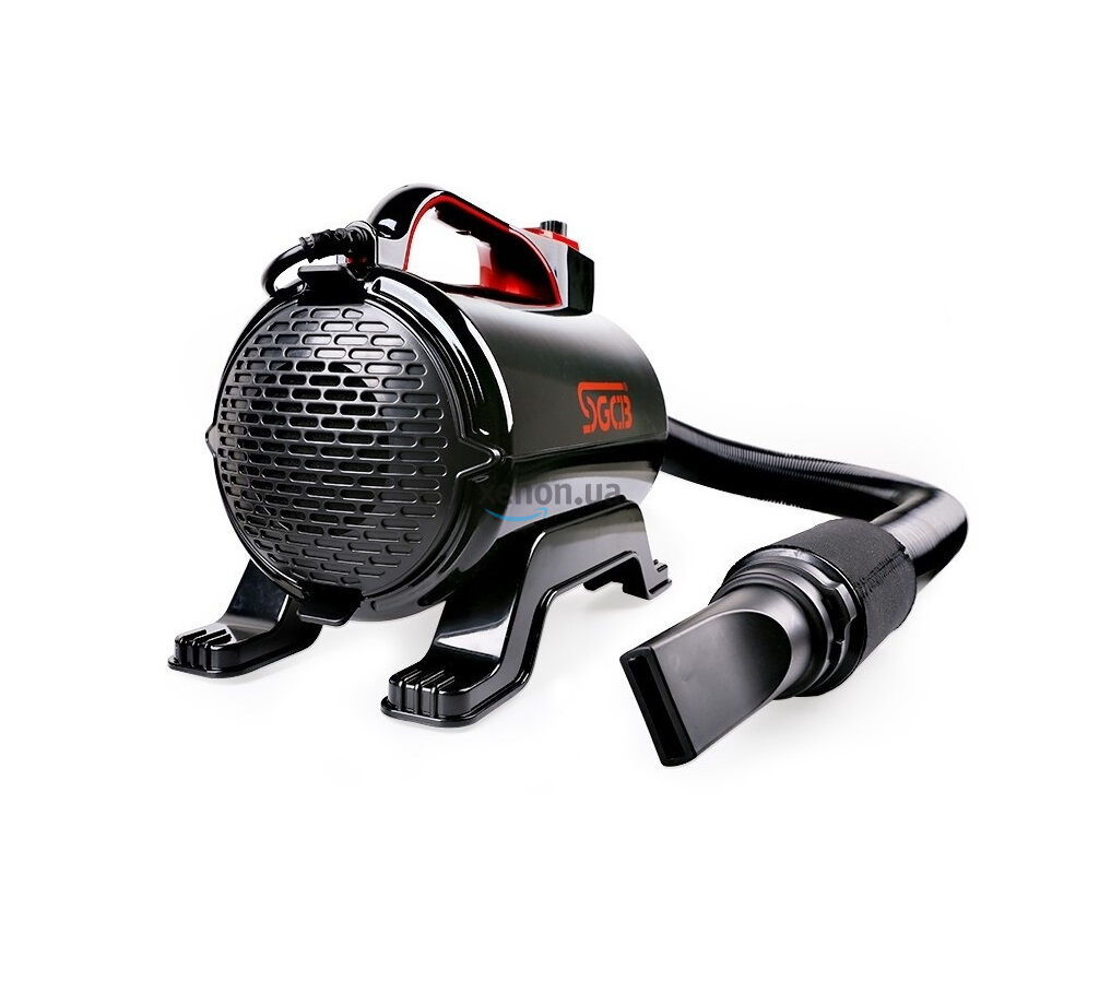 Універсальна турбосушка з функцією підігріву SGCB Car Dryer Blower призначена для сушки кузова автомобіля за допомогою потоку повітря, у випадках, коли необхідно зменшити або уникнути впливу протирочного матеріалу. При роботі апарата повітря нагрівається до 65 градусів. Апарат оснащений двома температурними режимами: 25 і 65°C, а також регулятором швидкості потоку повітря від 7 до 290 м/с.