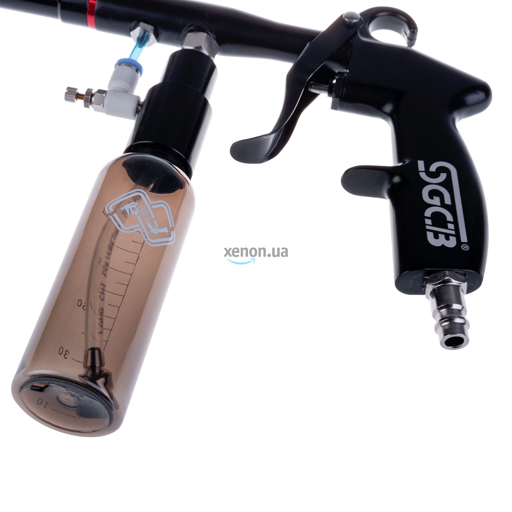Пістолет SGCB Tornado Coating Gun працює за принципом ефекту торнадо та створює потужний вихровий потік, завдяки якому склад з бачка на виході перетворюється на спрямований дрібнодисперсний туман.