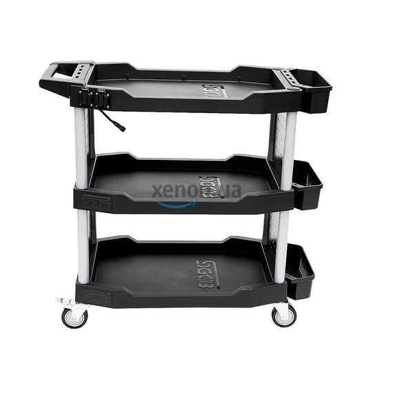Трирівневий дизайн і великий розмір полиць дає змогу зручно зберігати інструменти. Кожна полиця витримує навантаження до 40 кг;