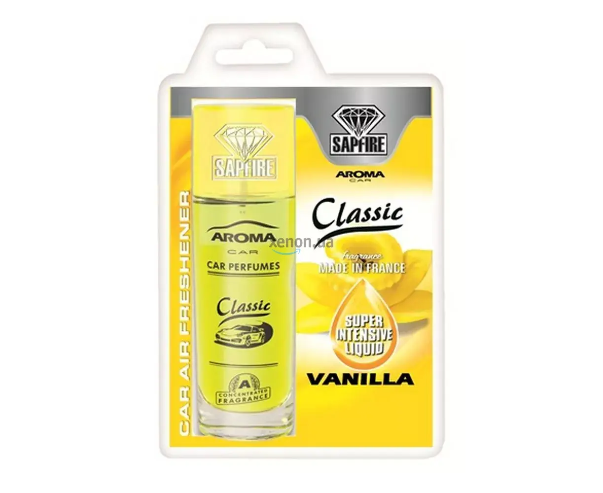 Автомобільний ароматизатор SAPFIRE Aroma Car Pump Spray Classic - Vanilla 50 мл (920567) є рідкою ароматичну композиція в скляному флаконі ємністю 50 мл з розпилювачем і напівпрозорої кольорової кришкою. Аромат виділяється натисканням на розпилювач, який подає необхідну кількість ароматичного туману.