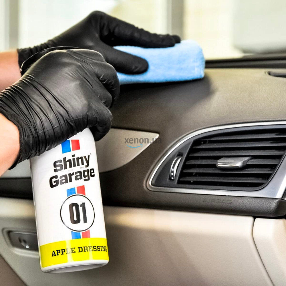 Shiny Garage Apple Dressing - засіб для догляду за пластиковими елементами в салоні автомобіля, чудово живить пластик, надає матовий блиск і має приємний яблучний аромат. З його допомогою ви швидко та ефективно освіжите пластикові, дерев'яні чи хромовані елементи у салоні автомобіля.