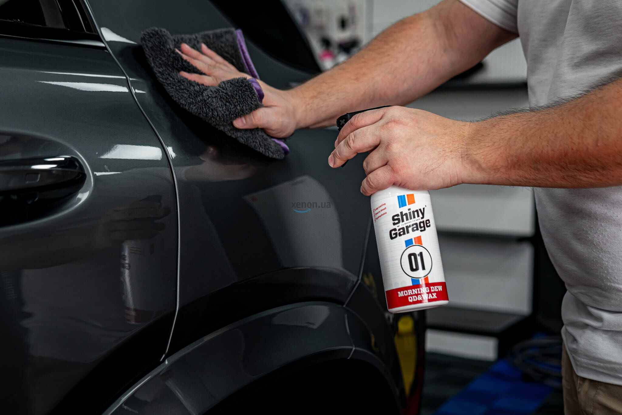 Shiny Garage Morning Dew QD & WAX Wax Detailer – продукт для швидкого освіження та захисту лакофарбового покриття, видалення відбитків пальців та легких забруднень. Завдяки спеціальному поєднанню полімерів та восків лак стає слизьким та насиченим за кольором.