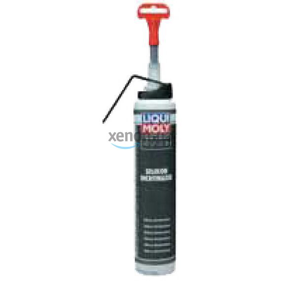 Силіконовий герметик (чорний) є високотемпературним, однокомпонентним ущільнюючим засобом, який вулканізується під дією вологості повітря й утворює масу, що довго зберігає еластичність. Силіконовий герметик (чорний) може використовуватися для ущільнення різних матеріалів (наприклад, метал, пластмаса, скло, фарфор, лаковані дерев'яні поверхні тощо), а також в моторо-, редукторо-, машино-, контейнеро- і верстатобудуванні, при виробництві обігрівального обладнання та кліматичної техніки. ЗАСТОСУВАННЯ Поверхні, які необхідно ущільнити, повинні бути чистими, знежиреними й сухими. Зняти ковпачок і повернути дозатор балона на 90Вdeg ;. Нанести рівномірно герметик і відразу ж притиснути деталі, щоб не дати засобу часу для підсихання. Після використання знову повернути дозатор на 90Вdeg; і встановити на місце ковпачок. Примітка: Можлива неповна сумісність герметика з поверхнями та покриттями з поліпропілену, поліетилену, тефлону й бітуму. Тому рекомендується перед застосуванням провести пробну обробку..