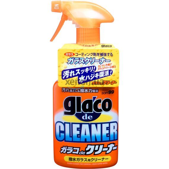 Очищувач скла з водовідштовхувальним ефектом SOFT99 GLACO De Cleaner 400 мл 04111 — очищувач скла з водовідштовхувальним ефектом. Дозволяє легко видалити бруд, пташиний послід і залишки комах. Водовідштовхувальні властивості виявляються на швидкості 60км\ч. Підходить для стекол, покритих складами Glaco. Засіб делікатно очищає скло і продовжує водовідштовхувальні властивості. Інструкція: SOFT99 GLACO De Cleaner Вимийте і висушіть поверхню, що обробляється