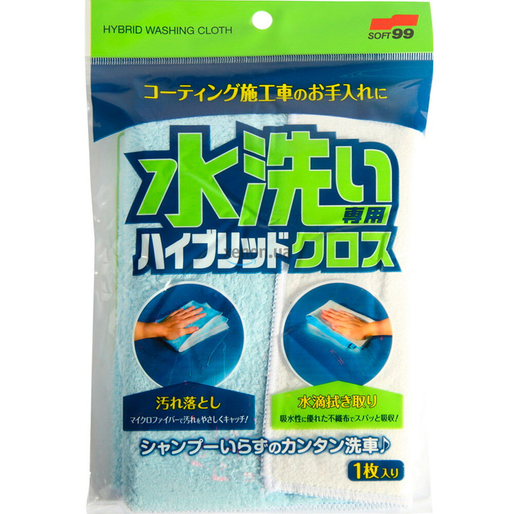 Багатоцільова гібридна тканина SOFT99 Hybrid Cloth 04024 - серветка з віскози насухо і без розлучень витирає поверхню після миття. Так само, з одного боку, витирає бруд і розлучення, зі зворотного, розполіровує.