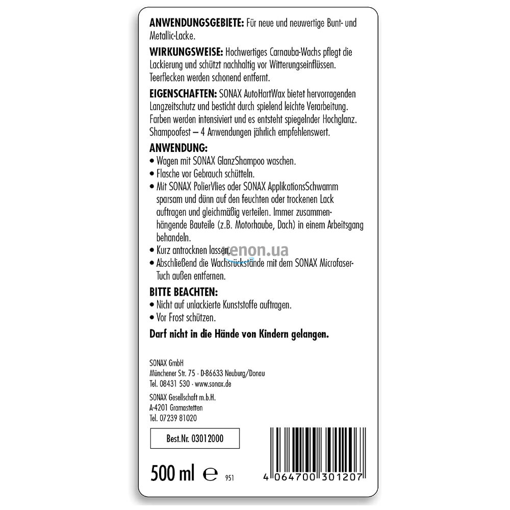 SONAX Auto Hart Wax рідкий гарячий віск карнауби 500 мл
