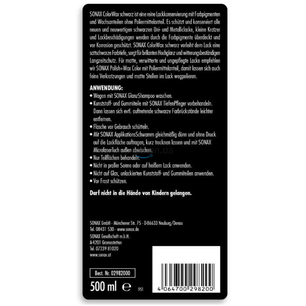 SONAX ColorWax Schwarz чорний рідкий віск для кузова автомобіля 500 мл