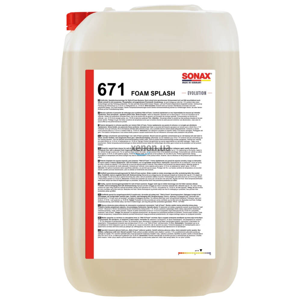 Потужний спеціальний пінний очисник SONAX Foam Splash Evolution 671705. Швидко створює велику закриту пінну стіну, яка потім знову швидко руйнується. Знижує забруднення піногенератора. Добре миється. Зі свіжим ароматом. рН 10.