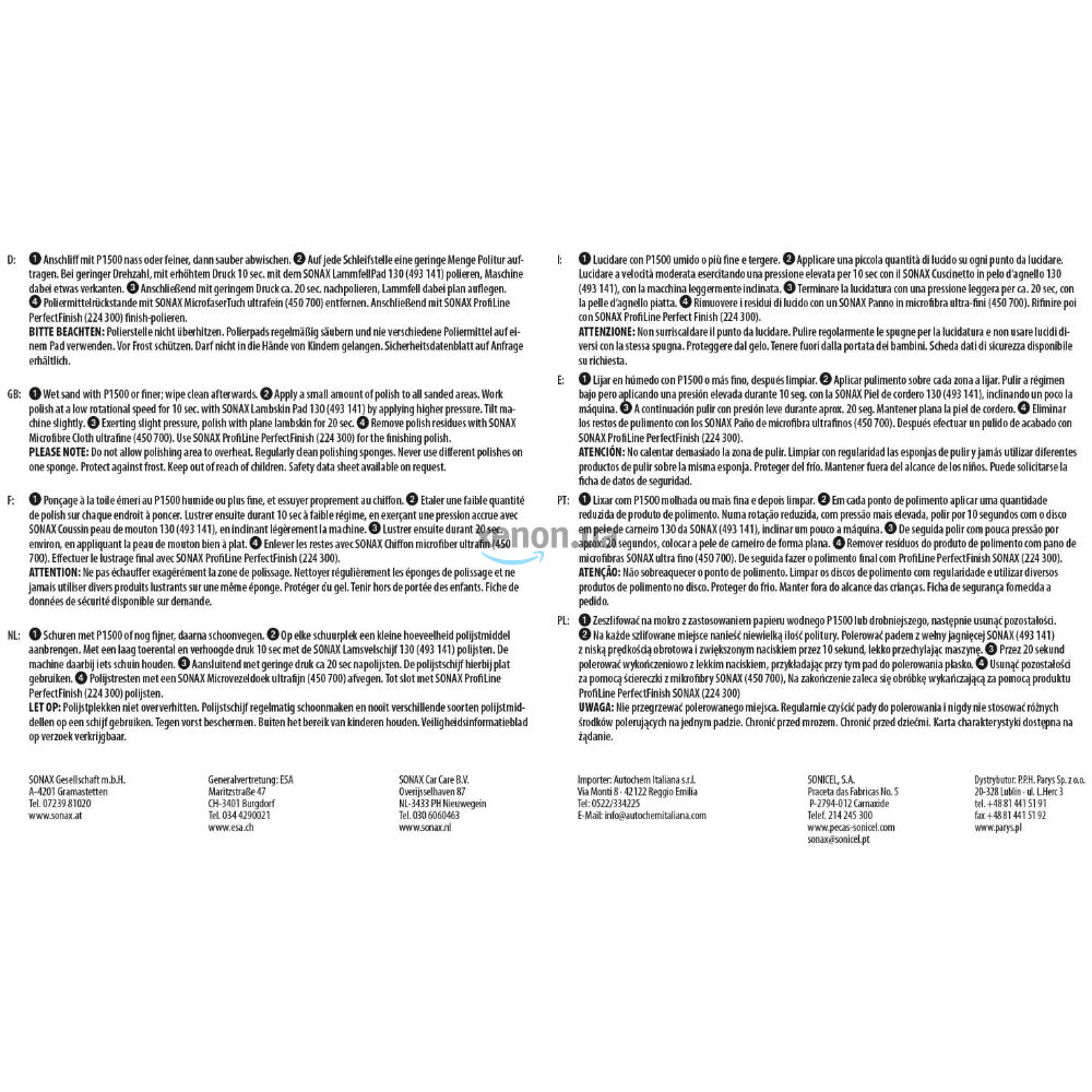 Інструкція: однокрокова полірувальна паста SONAX PROFILINE Cut & Finish 225 141