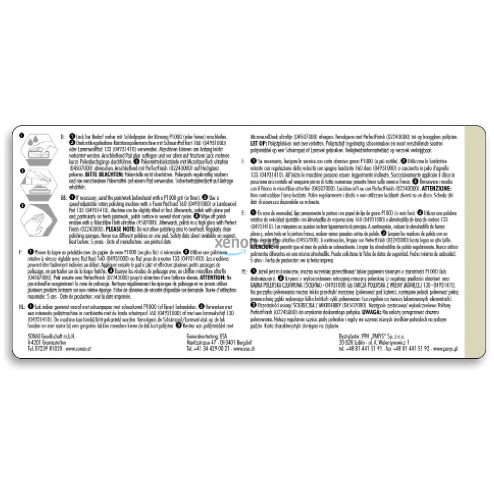 - Після попереднього полірування за допомогою SONA X PROFILINE CutMax 06-04 246300 закінчіть фінішною поліроллю SONAX PROFILINE Perfect Finish 04-06 224300 і зеленим полірувальним кругом середньої жорсткості0> /li