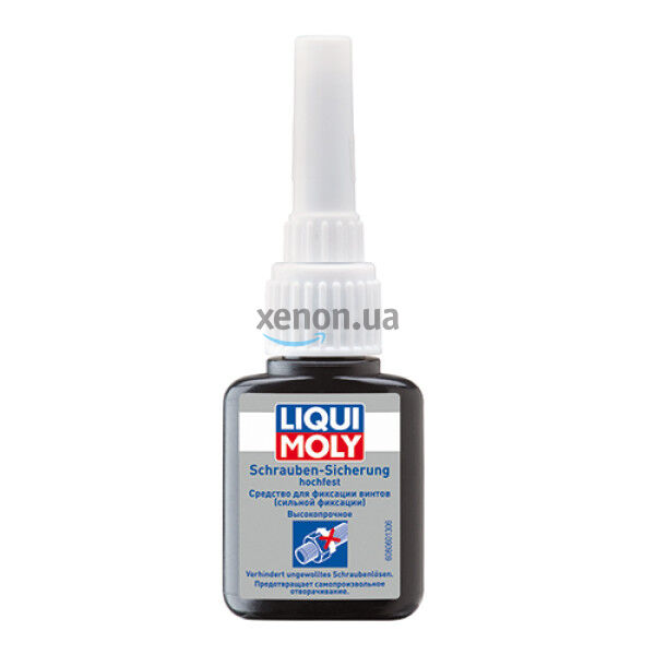 Schrauben-Sicherung hochfest низьков'язкий склад на основі метакрилових ефірів зеленого кольору. Застигає в тонких зазорах без доступу кисню (анаеробний механізм). Швидкість застигання залежить від матеріалу поверхні, гальванічні покриття уповільнюють застигання, фосфатація, навпаки, прискорює. Має відмінну стійкість до дії хімічних реагентів і вібрацій. Широкий температурний діапазон застосування від -55°С до + 150° С. Момент сили, необхідний для відкручування - 28-56 Н· м. Максимальний розмір різьблення М10. Час повного затвердіння на чистому металі близько 8 годин, час початку полімеризації 10-15 хвилин.