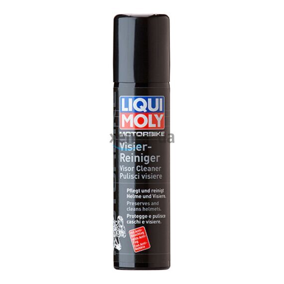 Очищує і забезпечує догляд за шоломами та забралами шоломів. Має антизапітніваючий ефект при обробці будь-яких типів скляних і пластикових забрал. Видаляє забруднення, сліди оливи, силікону й комах. Забезпечує надійність і ясність огляду. Застосування: спеціально призначене для очищення, догляду та запобігання запотівання забрал шоломів. Перед застосуванням перевіряють сумісність засобу з матеріалом забрала. Для видалення забруднень наносять засіб на поверхню, що очищається, дають йому подіяти і протирають вологою тканиною. Для запобігання запотівання: розпилюють засіб і дають йому висохнути.