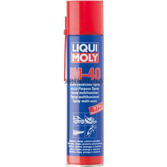 Змащує, очищає, розчиняє, захищає та доглядає. Забезпечує надійне змащення тертьових поверхонь. Завдяки дуже високій проникаючій здатності LM-40 потрапляє у важкодоступні місця. Розчиняє міцний шар іржі на болтах і гвинтах за дуже короткий час. Очищає дуже сильні оливні та жирові забруднення, відділяючи їх від поверхні. Захищає від іржі й корозії та забезпечує догляд за хромованими поверхнями. Застосування: цей засіб є універсальним. Застосовується в побуті, сервісах, промисловості, для автомобілів. Для догляду за шарнірами, замками, різьбовими з'єднаннями, засувками, тягами Боудена, автомобільними антенами та ін. Нанести засіб на оброблювану поверхню.