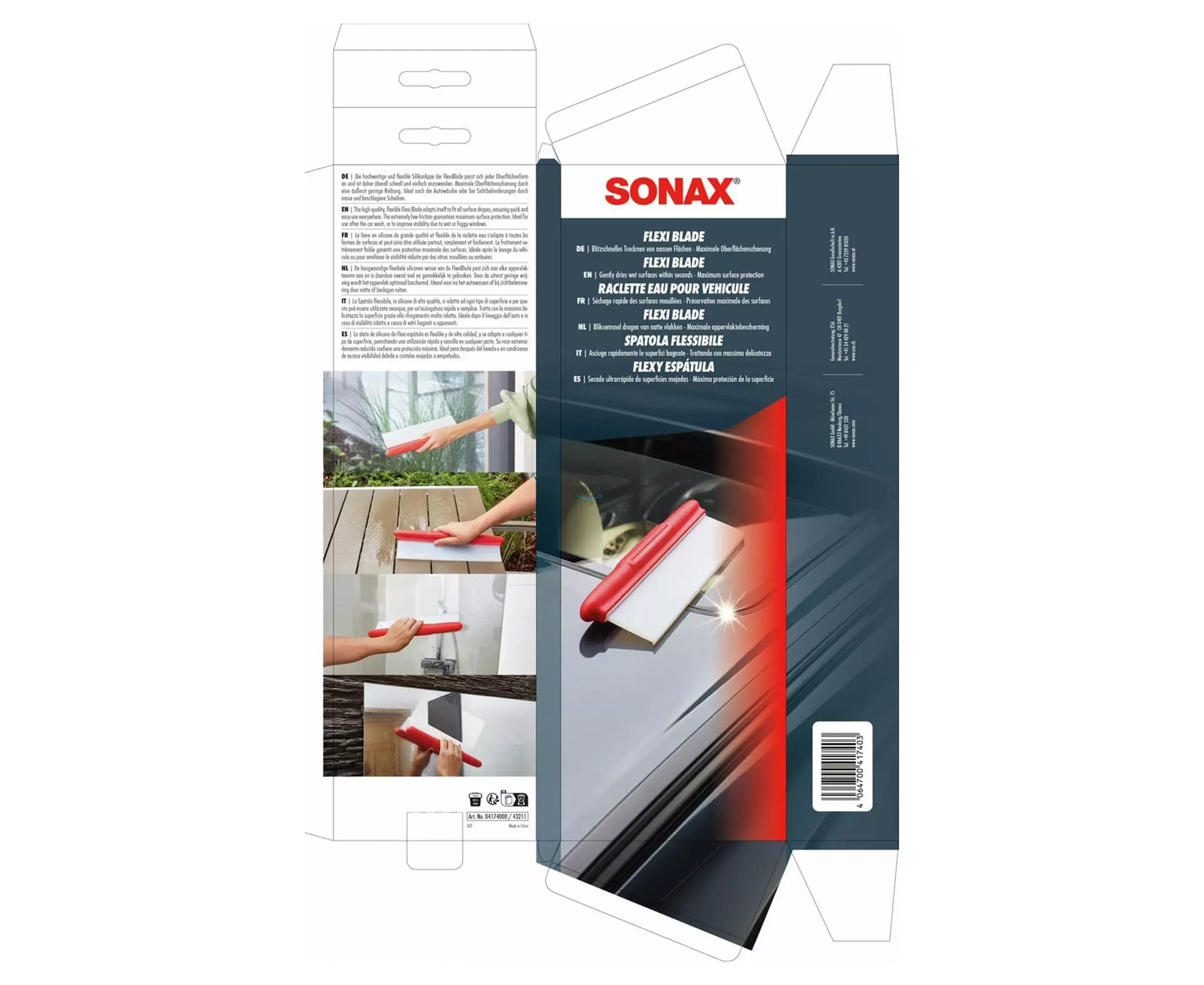 Силіконовий водовідгін SONAX Flexiblade - це професійний інструмент для миттєвого видалення вологи з будь-яких гладких поверхонь. Інноваційне Т-подібне силіконове лезо ідеально адаптується до будь-якої форми поверхні, забезпечуючи бездоганний результат без розводів та подряпин.
